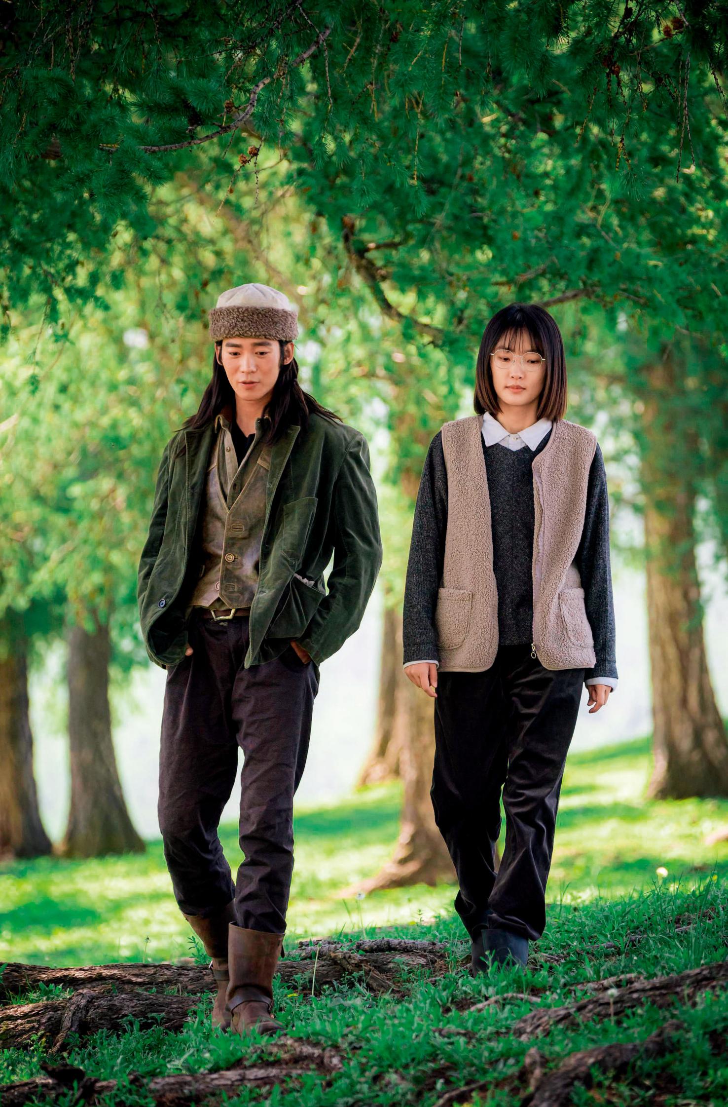 《封神》为于适的表演推开一扇门,《我的阿勒泰》则领他来到旷野。前者是基本功的稳扎稳打,后者更像是自由创作的实践。新疆的草原没有复杂的灯光轨道,没有精确的走位标记,只有牧人、牛羊,和不断被拉长的时间。自由的环境下,表演也就有了更多可能性。他记得《我的阿勒泰》里有场戏,巴太骑马而来,发现文秀在草原上睡着了。剧本上写:“巴太恶作剧般地把文秀的鞋带系在了一起,致使她后来摔了一跤。”真正拍摄时,于适看到草地上开满黄色小野花,就摘下了一朵,别在了文秀的眼镜上。
