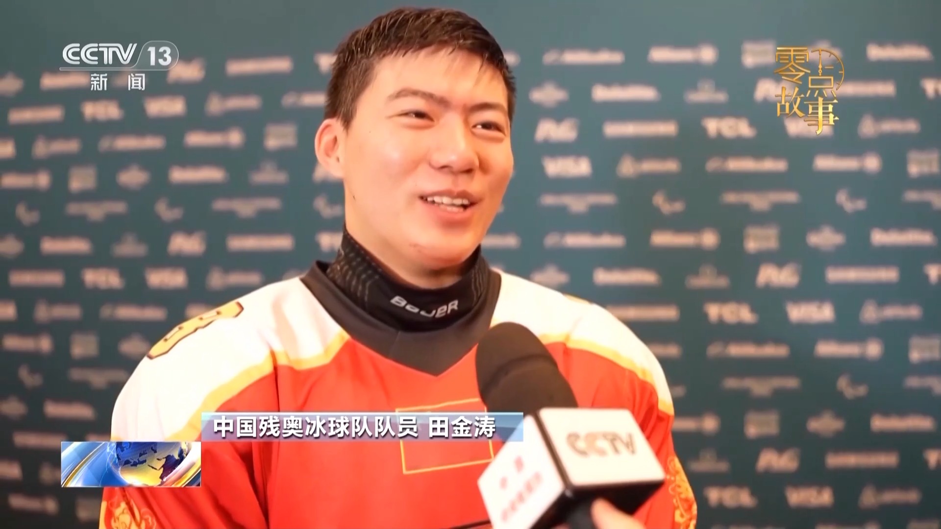 中国残奥冰球队队员 田金涛:国家提供了一个残奥冰球平台,给我带来很多乐趣。以前出了事故后,很自卑。自从接触了残奥冰球,大家在一块,没有嫌弃不嫌弃,很开朗、团结。