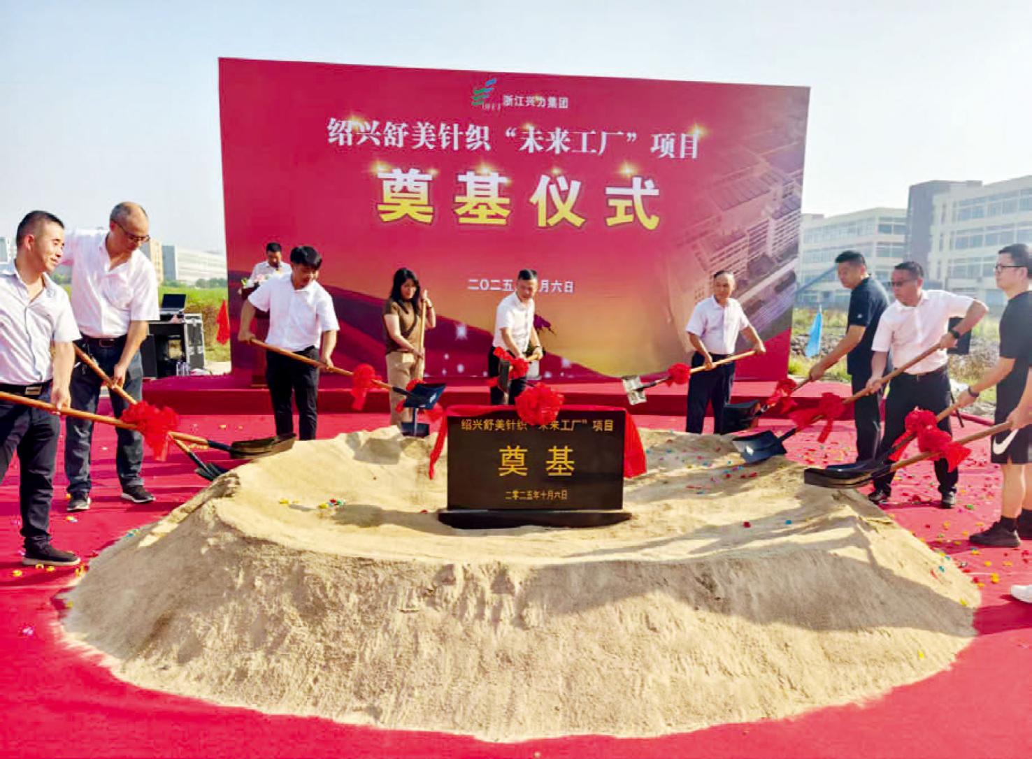 2025年10月6日,在绍兴马鞍街道滨中路的施工现场,一场奠基仪式正在进行。张国华手持金锹为项目培下第一方土。这一锹土,标志着绍兴舒美“未来工厂”正式破土动工。