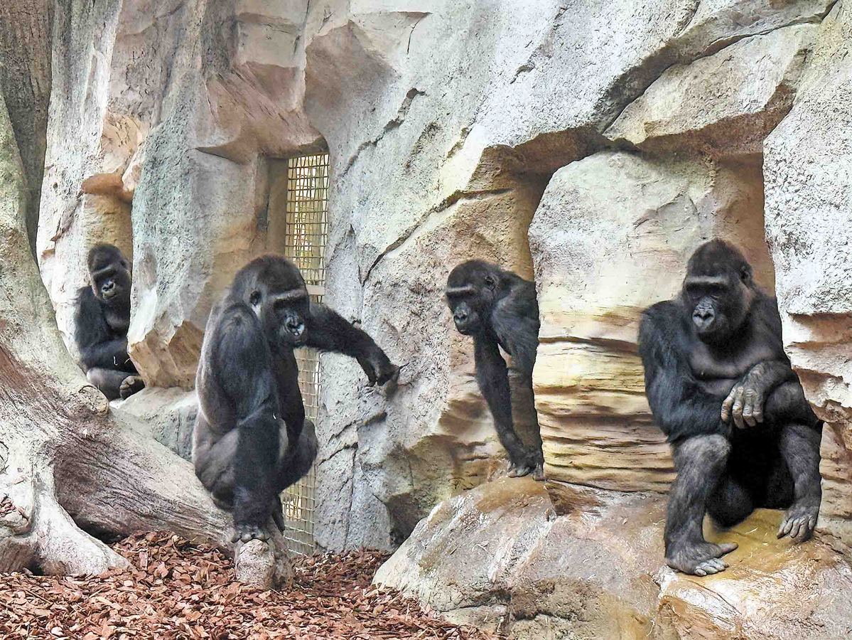 Four large gorillas from the Royal Burgers' Zoo in Arnhem, the Netherlands, are seen at Nanjing Hongshan Forest Zoo in the capital of Jiangsu province after arriving in February 2025. CHINA DAILY