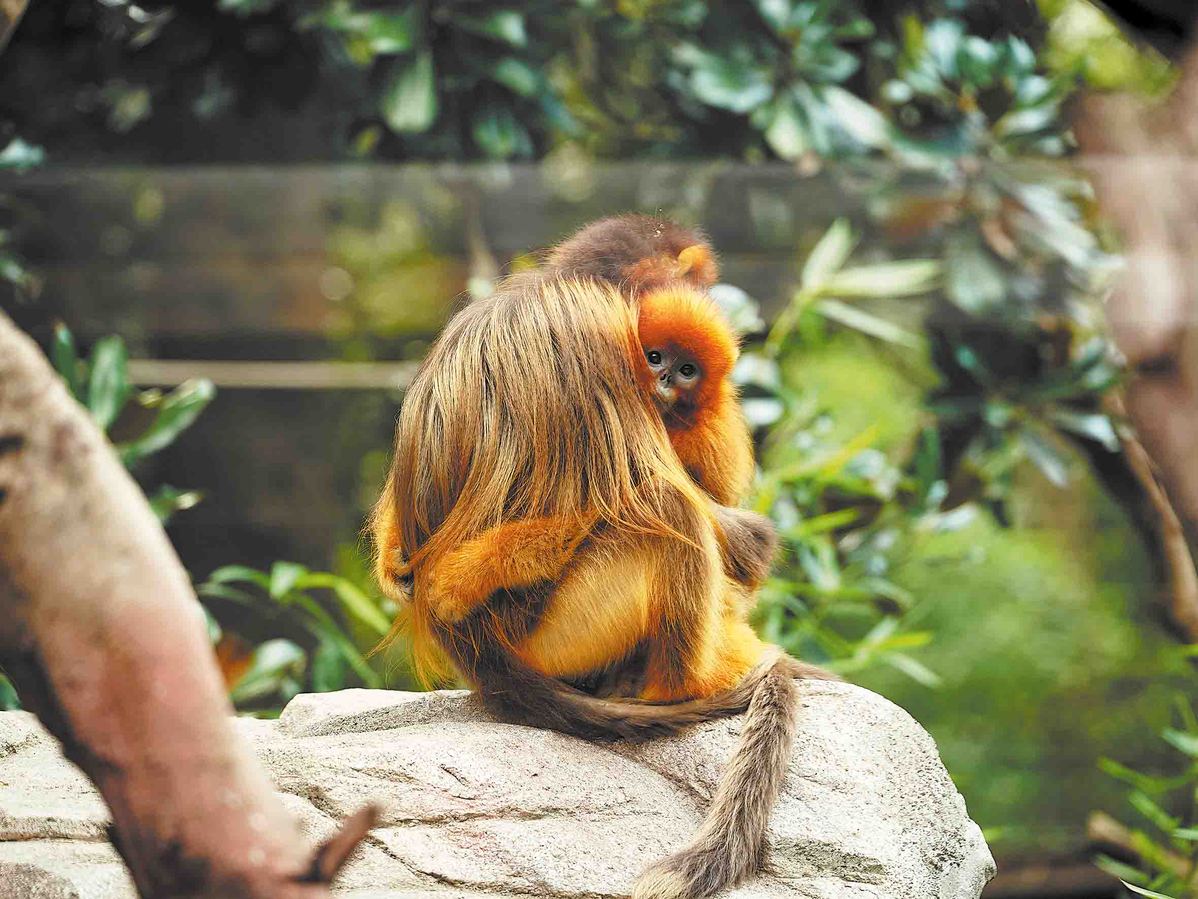 A golden snub-nosed monkey cradles her baby at the Tangjiahe National Nature Reserve in Guangyuan, Sichuan province. CHINA DAILY