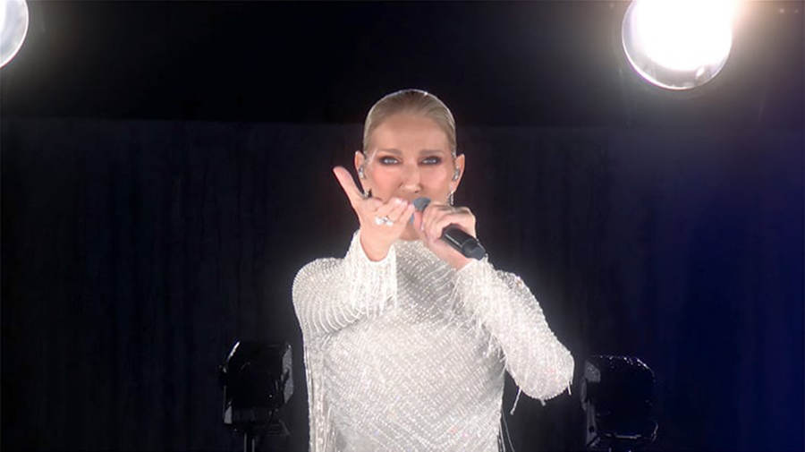 2024年7月,巴黎奥运会开幕式接近尾声时,身着银色礼服长裙的席琳·迪翁出现在埃菲尔铁塔上,深情演唱法国经典名曲《爱的颂歌(Hymne à l'amour)》,令全世界观众无比动容。