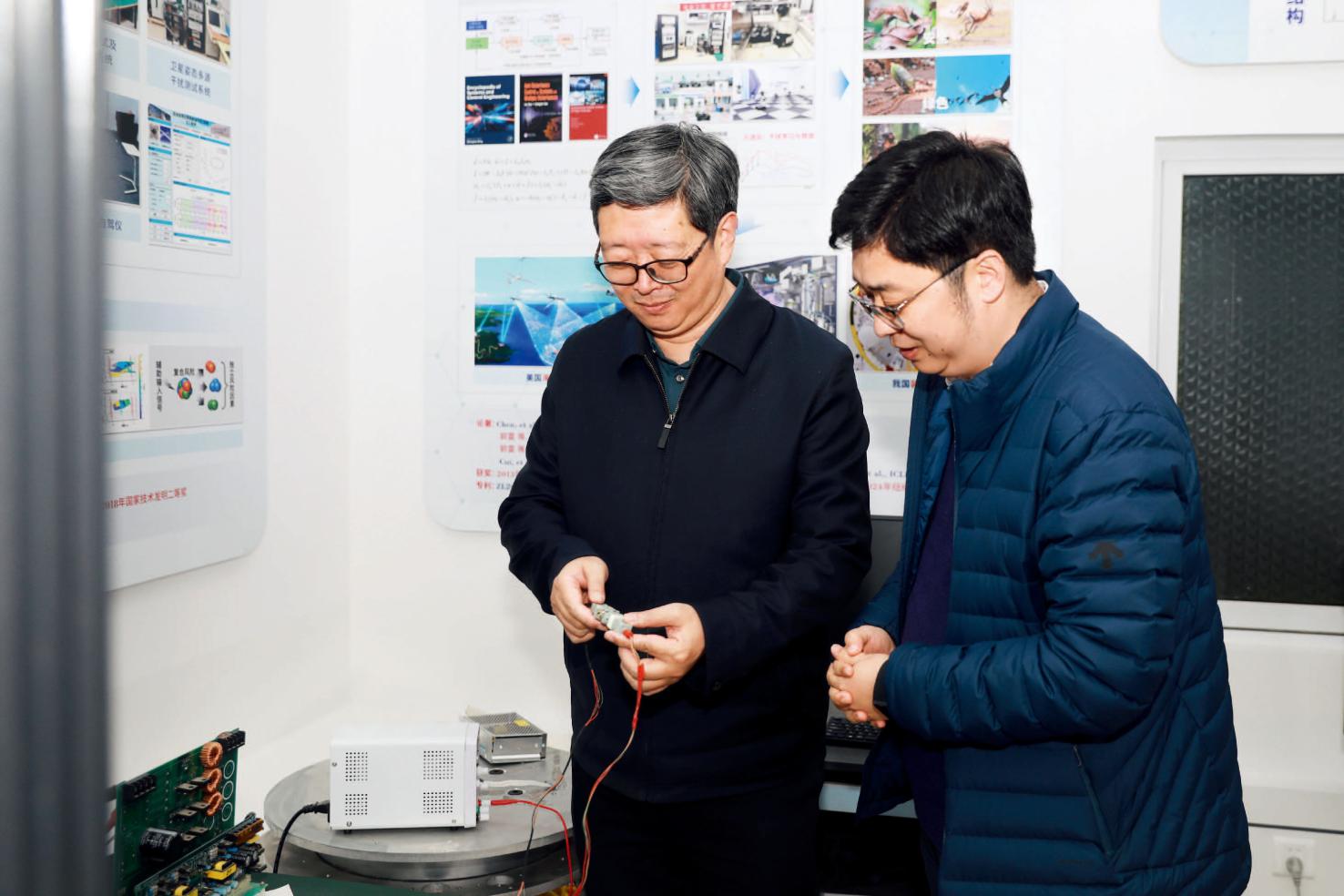 2026年3月,郭雷(左)在北京航空航天大学和科研人员交流。(本刊记者 侯欣颖/摄)