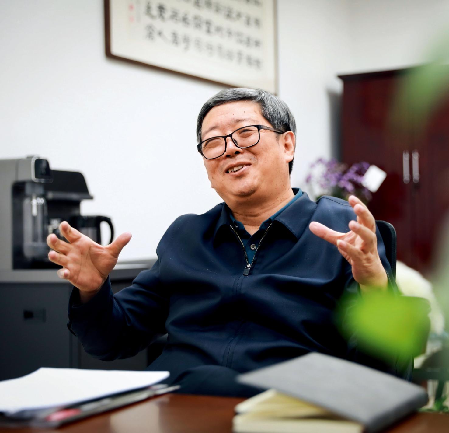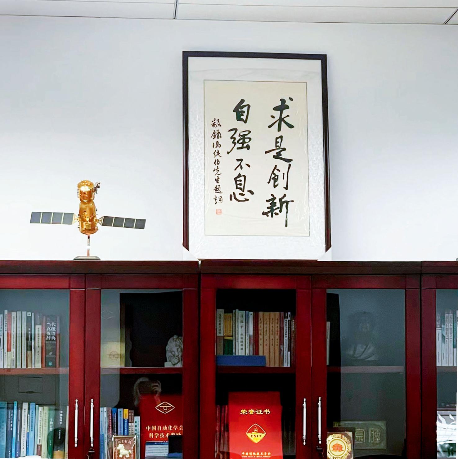 在他的办公室里,两幅字静静挂在墙上,一幅是冯纯伯写的“求是创新,自强不息”,另一幅是友人送的毛泽东诗词“天若有情天亦老,人间正道是沧桑”。墨色沉凝,如同岁月的坐标,标定着一位科学家的初心与征途。