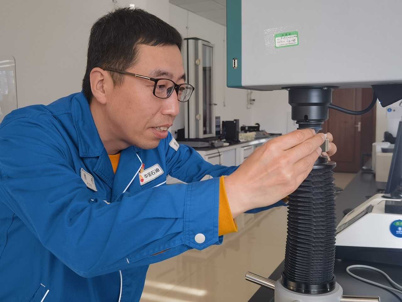 图为陈明在吉化揭阳分公司实验室为样品测试硬度