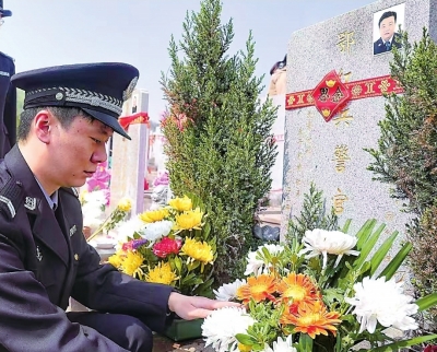 “老鄂啊,我们涂家沟人好想你。你放心,小鄂接了你的班,跟你一样,做事认真,是个好民警。在我们大家心里,你的警号‘032078’从未离开!”陪同一起前来祭扫的涂家沟群众魏威等人纷纷向英雄献花致敬。