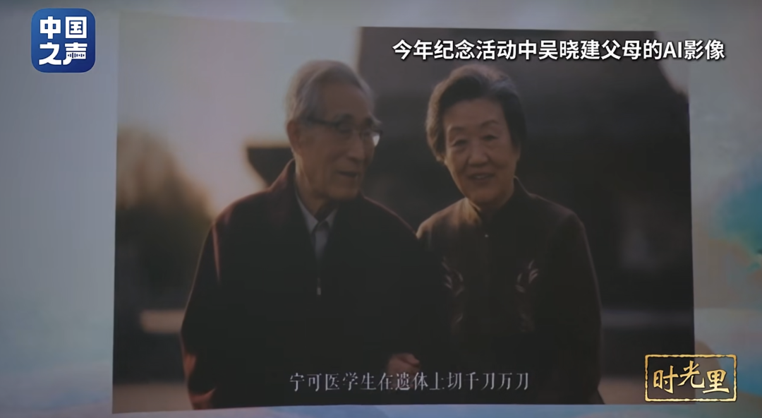 在今年的一场纪念活动中,AI数字人技术还原的吴家骧、李闻诗夫妇影像出现在众人面前,吴晓建久久无言。