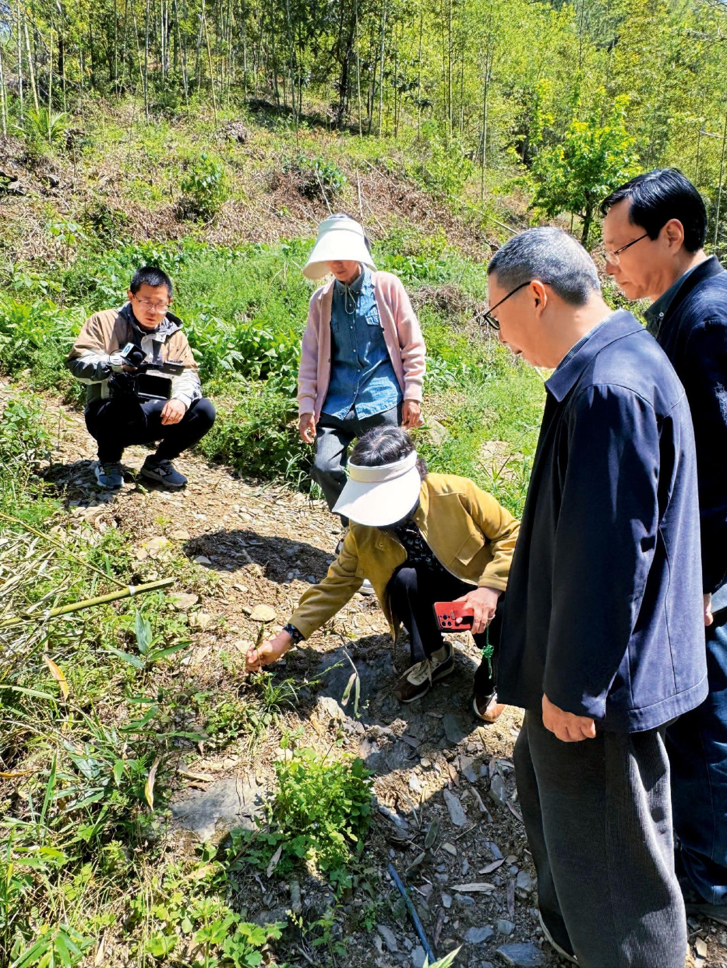 叶梅(身着黄衣者)在浙江淳安采访。(本文图片除说明外,均为受访者供图)