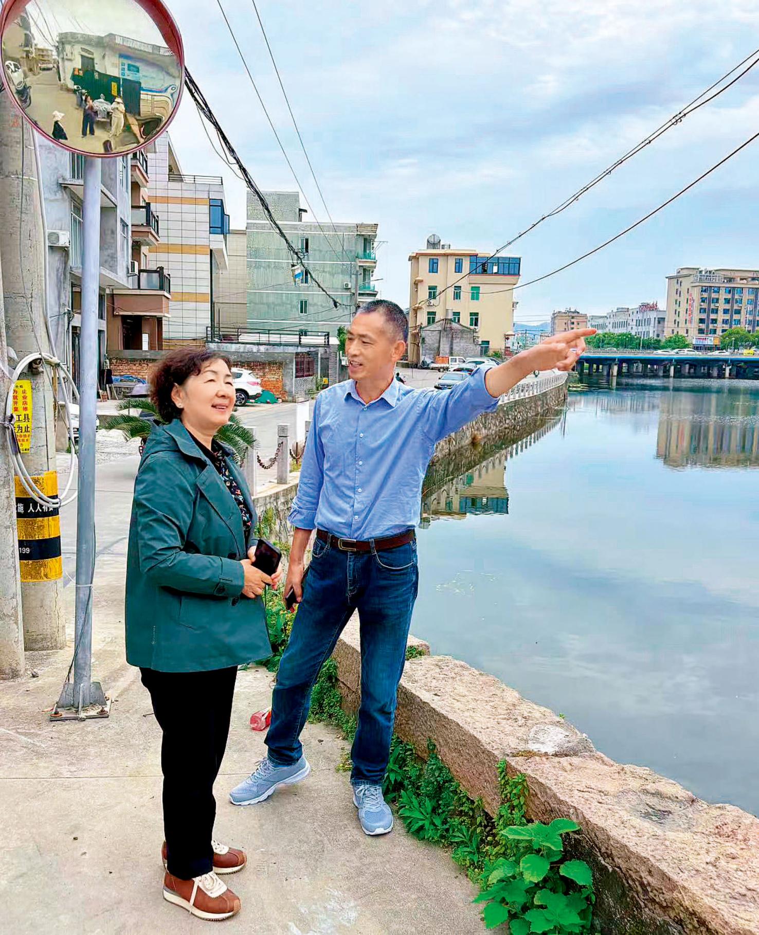 叶梅(左)在浙江台州采访。
