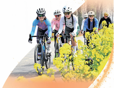 安徽亳州西淝河国家湿地公园,青年人在绿道上骑行,乐享美好春光。 刘勤利摄(人民视觉)