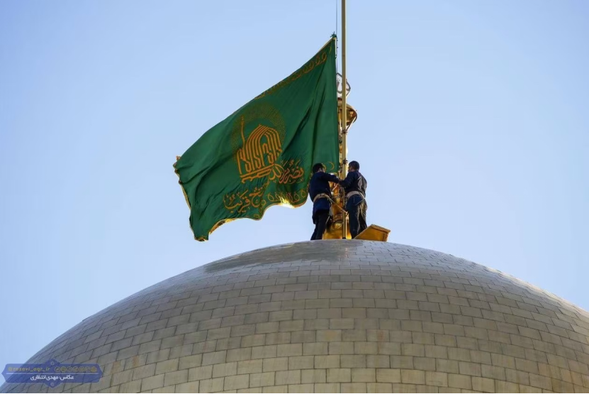 ·位于伊朗的拉扎维圣陵的圆顶上升起了象征胜利、和平与富饶的绿旗。(伊朗塔布纳克新闻网)