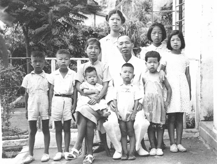 丘成桐全家福,1955年摄于香港沙田。前排左一为丘成桐。