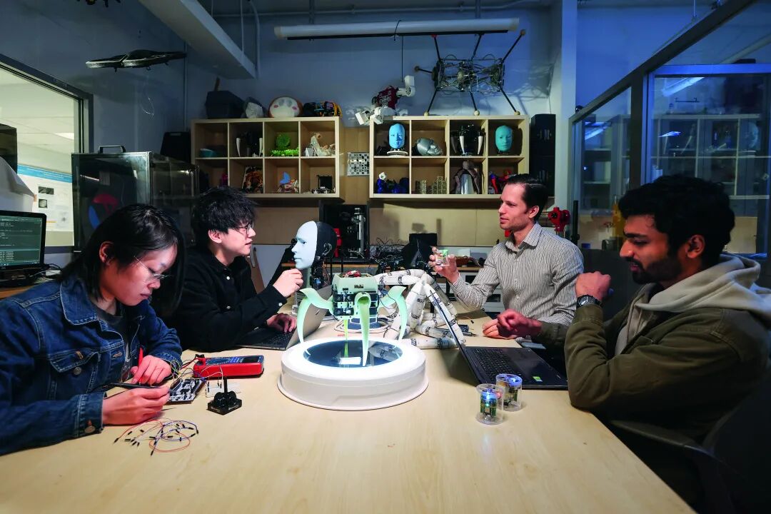 2024年11月,胡宇航研发的人脸机器人Emo—0参与了美国科幻电影的拍摄,他在短视频平台和网友分享了这个好消息。Emo—0创造性地采用了自学习模式,让机器人通过双目中的摄像头观察镜子中自己做出的表情,再结合数据库解读表情的含义,从而不断学习完善自己的动作。网友忽然发现,这位爱用视频特效搞抽象的博主竟是未来可期的学术才俊,大家纷纷调侃:股票代码有了吗?