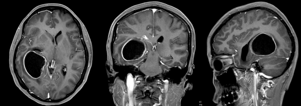 甘露醇脱水的效果越来越差,患者颅内这颗“炸弹”正在持续引爆,必须立即干预。医院果断为患者急诊行右侧颞枕叶占位病变切除术手术。
