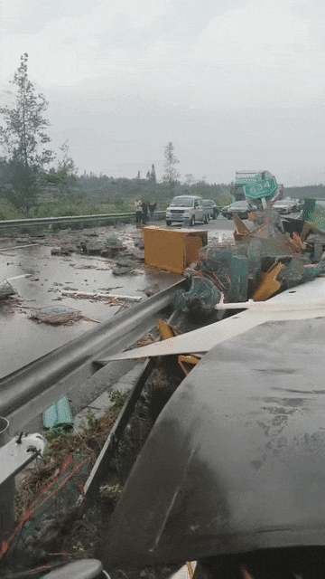 横在路中央,货物散落一地