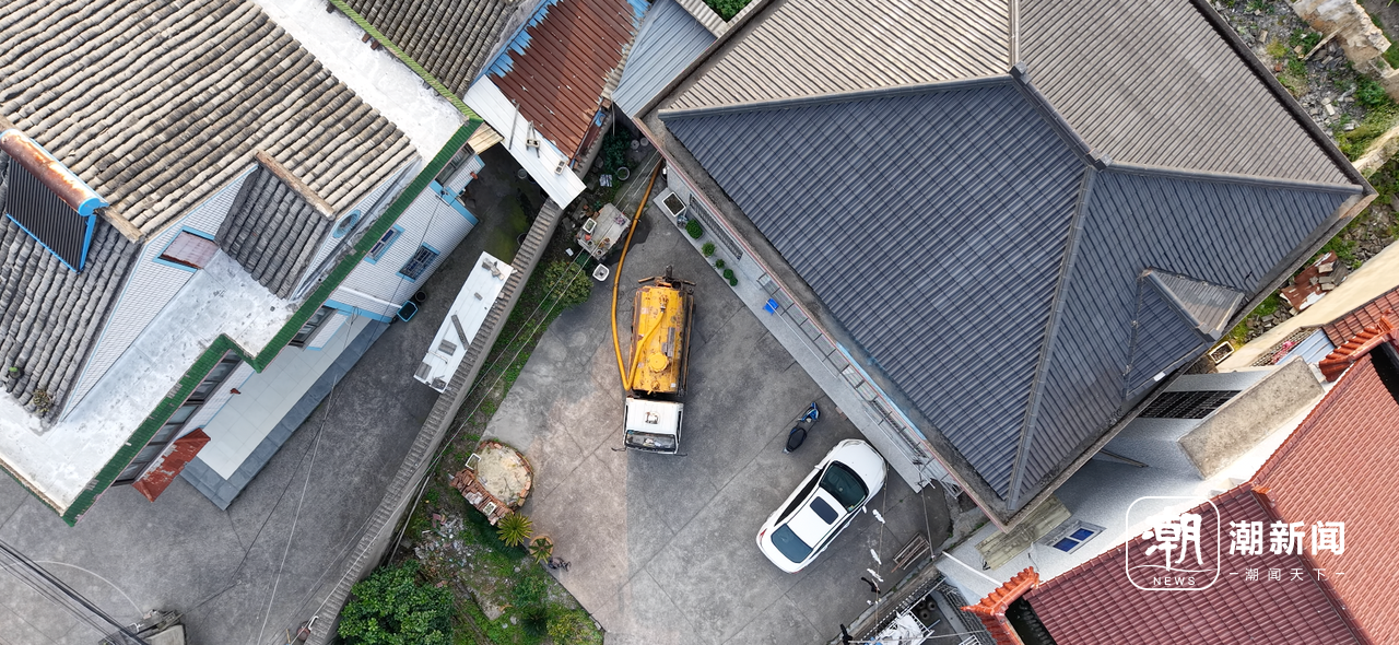 完成工作后,潘浩男和李雅晴开着吸粪车走远。潮新闻记者 于诗奇 摄