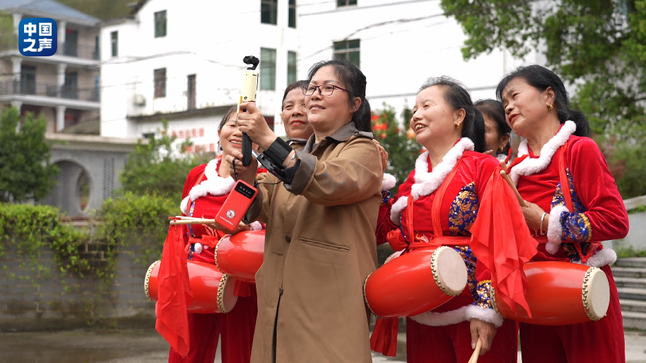谢爱莲(图左)在村里拍视频