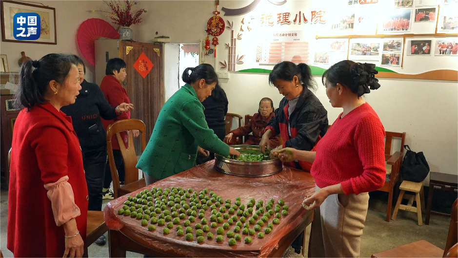 谢爱莲组织庙口村的妈妈们做艾米果