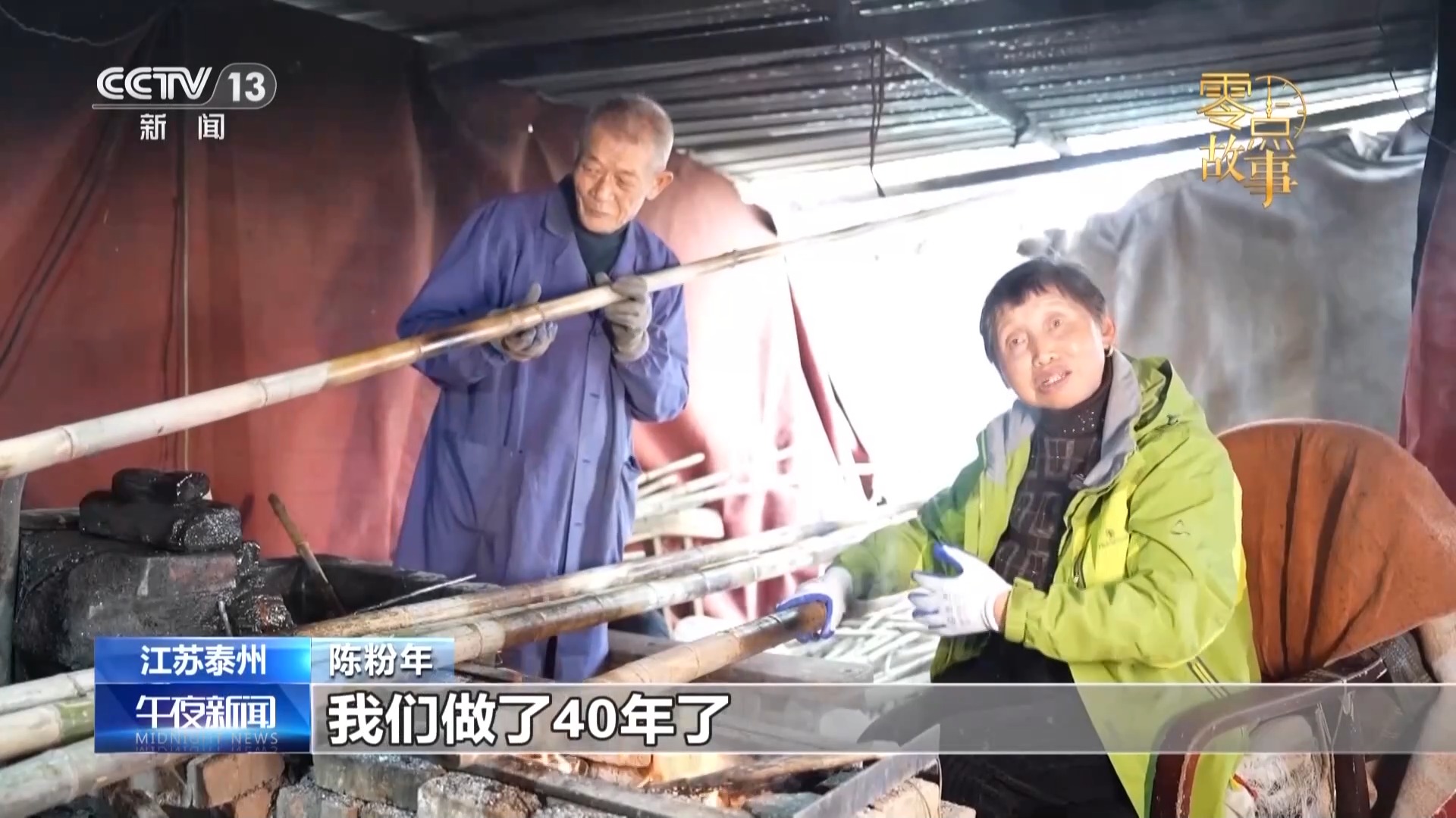 陈粉年:儿子就说我们两个人太辛苦。他说,你要多少钱,我养你们。我就说,溱潼会船数第一,这个篙子的活不能拒绝,八家作坊就剩我们一家。我说不喊苦。怎么办,就学的这个手艺,吃的这个饭,40年了,我们做了40年。
