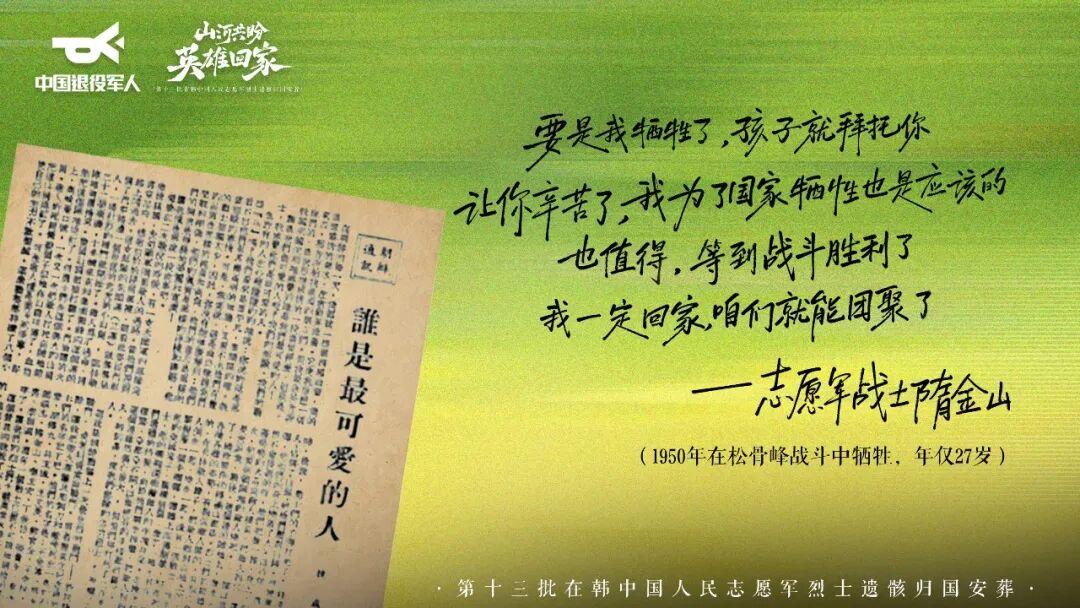 “70余载山河无恙,思念未减。第十三批在韩中国人民志愿军英烈即将荣归,雪域高原首次以满城灯火,赴一场跨越时空的致敬之约。 4月21日-23日 , 西藏自治区退役军人事务厅将联合拉萨市退役军人事务局在拉萨市城区南山公园山体、顿珠金融城沿河裙楼、金珠中路纪念碑以及军事博物馆人行天桥等地开展‘山河共盼 英雄回家’主题点亮行动”。