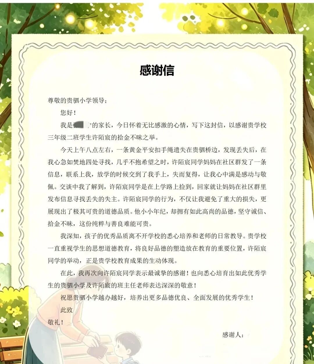 给贵驷小学送去一封感谢信