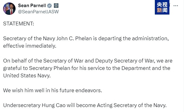 据悉,这将是美国总统特朗普第二任期内首位离任的军种部长。