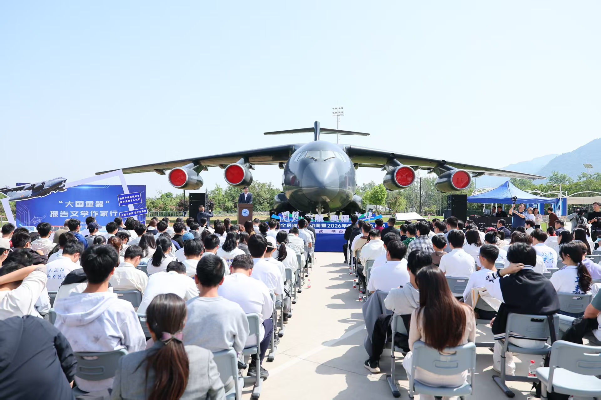 4月23日,第31个“世界读书日”如约而至。西北工业大学校园内,一场连接科技与文学的精神盛宴——“大国重器”报告文学作家行活动,在军工素质教育实践中心外场运-20“鲲鹏”大型运输机旁举行。本次活动由西北工业大学出版社、图书馆联合主办,旨在以报告文学为桥梁,挖掘“三航”(航空、航天、航海)科技文化内涵,传承“为国铸剑”精神,推动全民阅读深入校园。师生代表、作家等共二百余人参加了此次活动。