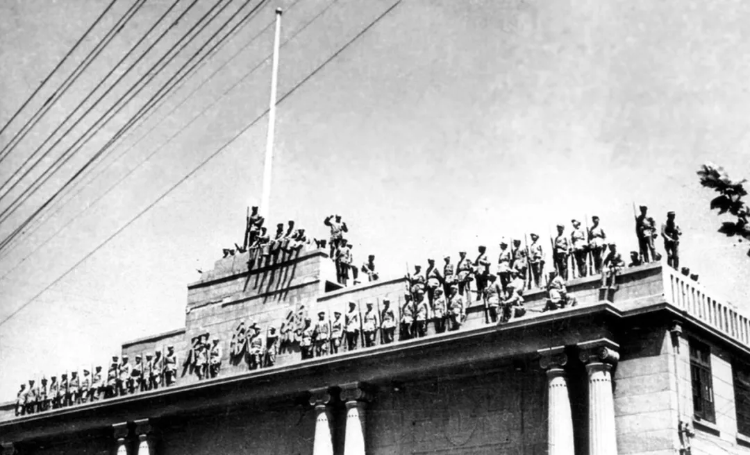 人民解放军登上“总统府”门楼。