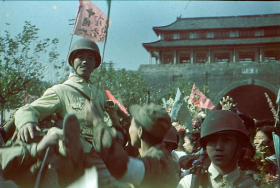 人民解放军在南京挹江门受到群众热烈欢迎。