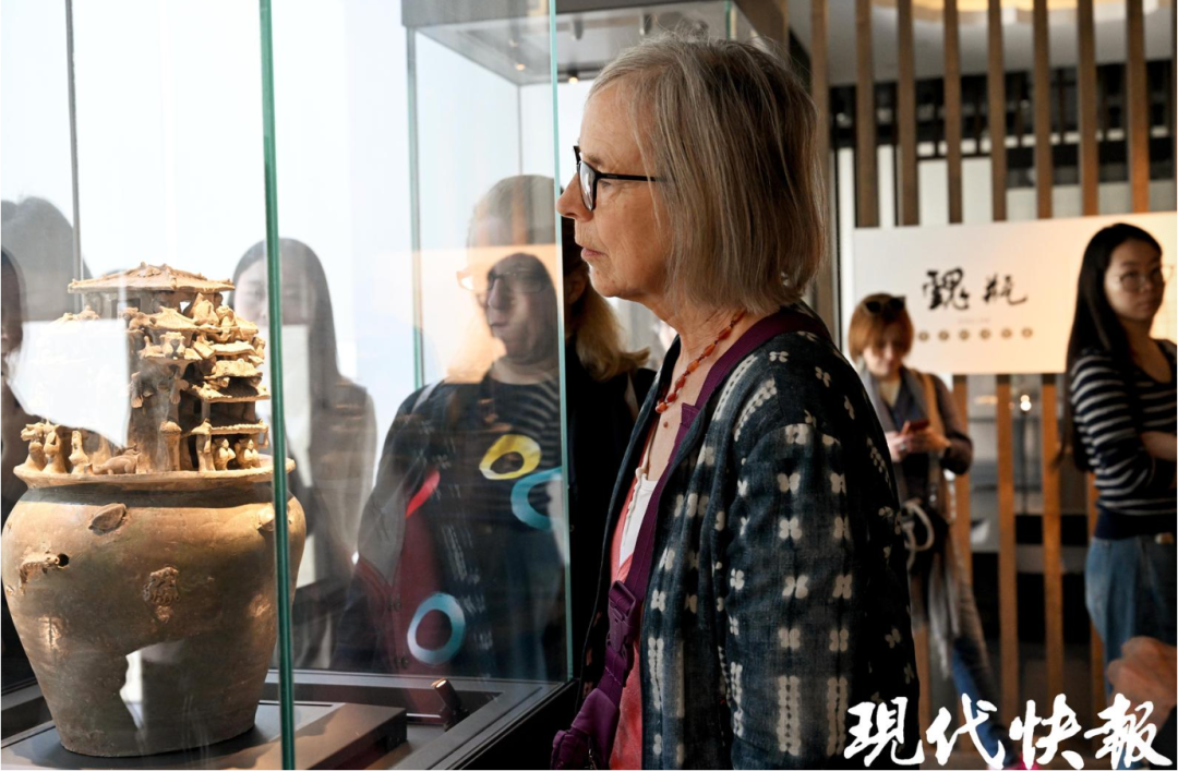听完讲解,众人感慨不已。意大利汉学家艾丽更是被这件文物深深打动,即便同行者已陆续离开,她仍留在原地,用手机细细拍摄,静静感受文物承载的千年情思。