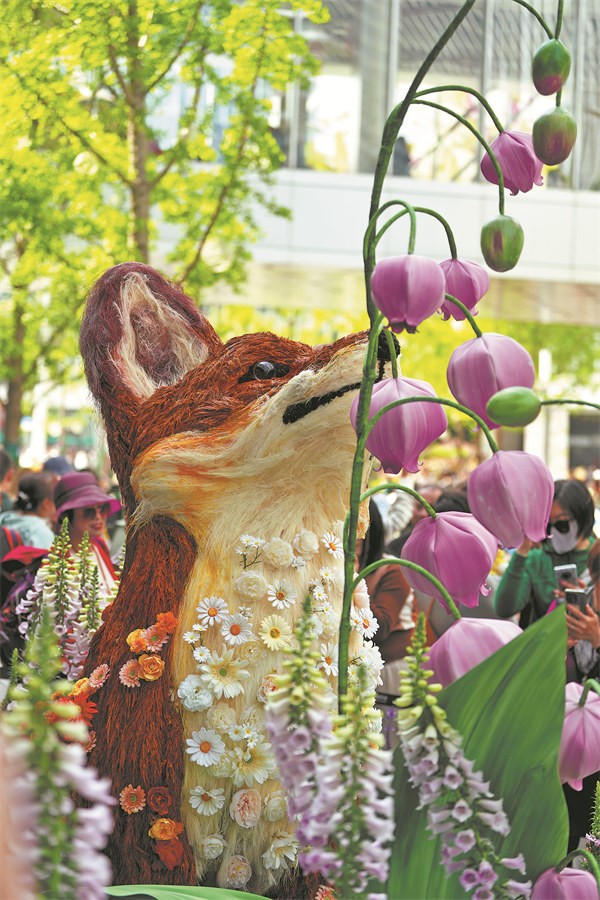 For Shanghai resident Zuo Feng, the creativity on display is most impressive. "The artists' innovative ideas are remarkable. They create animals with artistic sense and vitality using flowers, integrated with everyday scenes. The color compositions are excellent, too," he says.