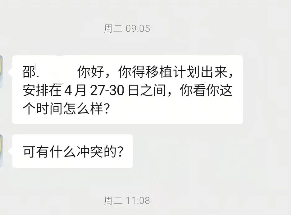 邵三虎收到捐献时间通知。图/社交平台截图