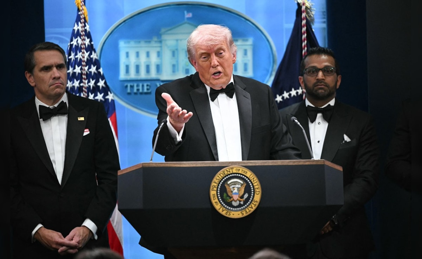 枪击发生后不久,特朗普召开了记者会。在镜头面前,他依然穿着参加晚宴的燕尾服,看起来情绪平稳。他先是夸赞了特勤局的现场表现,表示这一枪击事件“团结”了参加晚宴的所有人,并慰问在枪击中受伤的特工。