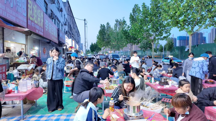 前不久的一个傍晚,正是周日就餐高峰。在菏泽市东明县,赵国振的火锅店热气腾腾,屋里屋外,约40张桌子坐满了顾客,男女老少100多人正吃得热闹。