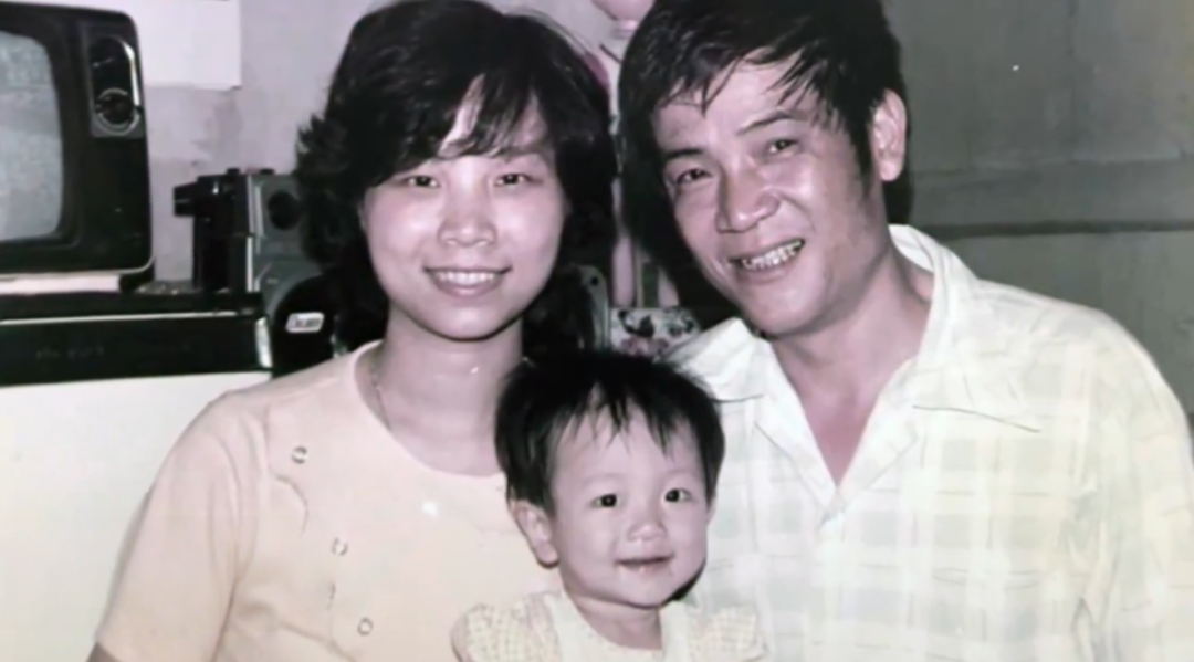 ·幼时的蒋维佳与父母。(哥伦比亚广播公司视频截图)