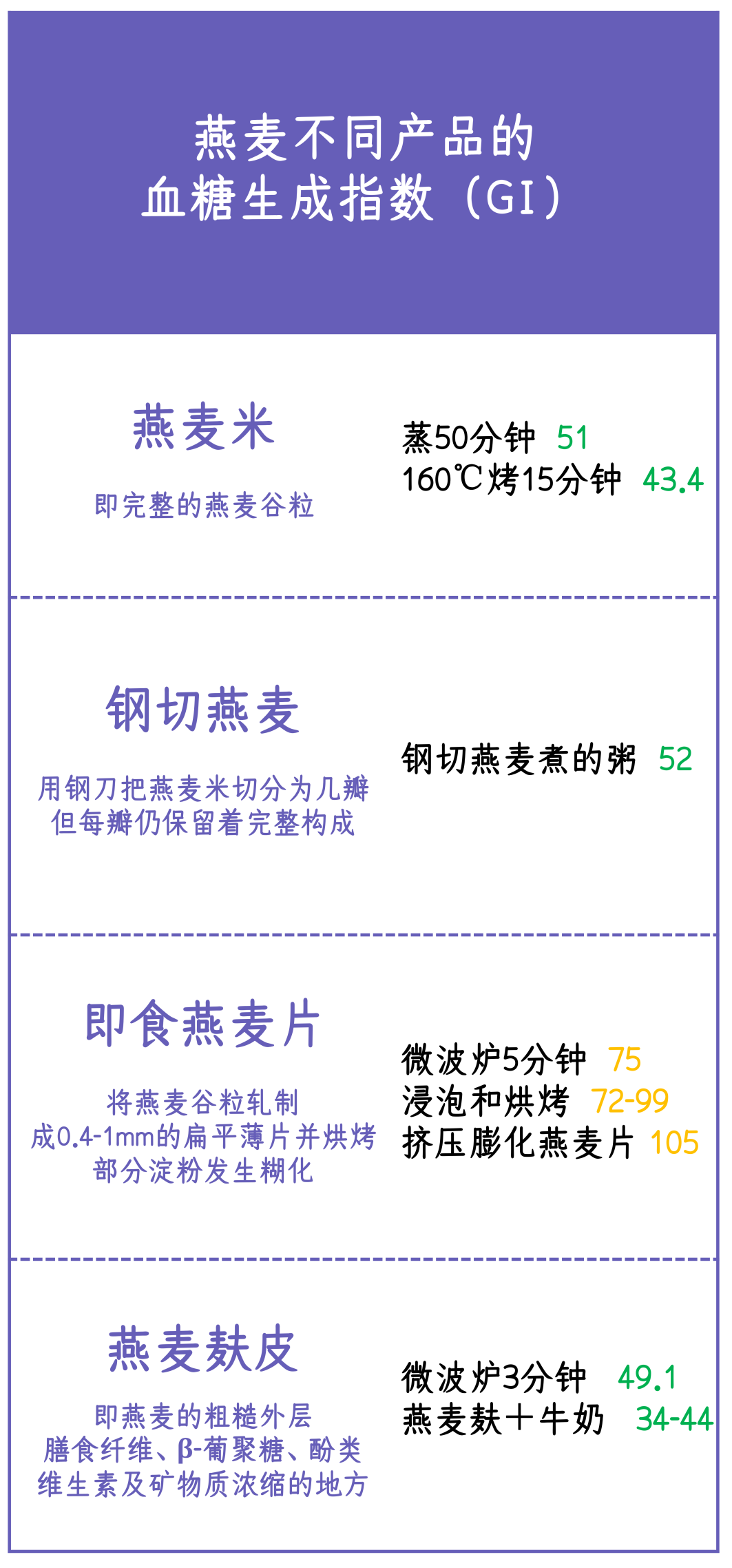 而燕麦中每克β-葡聚糖伴随着13g可利用碳水化合物,这个比例还达不到显著降低餐后血糖反应的程度,而且吃燕麦产品对葡萄糖和胰岛素反应的影响在很大程度上受到烹饪和加工方式的影响。